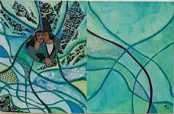 As my latest exhibition comes to an end I have been reflecting quite deeply on the work I have created for Turquoise Paradox and considering the next series of works to come. In these quite small scale, intimate works I have woven the story of my life with that of my partner’s. The journey we have been on both individually and the intersections of life where we walk together is the basis of these works.