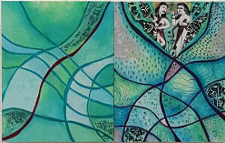Using the colour turquoise has had quite a calming and healing effect on me. Coming out of the heaviness of the last series of works and looking more closely at the stories around love, connection, communication, journeys of the heart and more explicitly this notion of my “life path” de-coded through numerology has inspired me to delve even deeper into the next direction I want to take both in terms of my teaching career and my art practice.